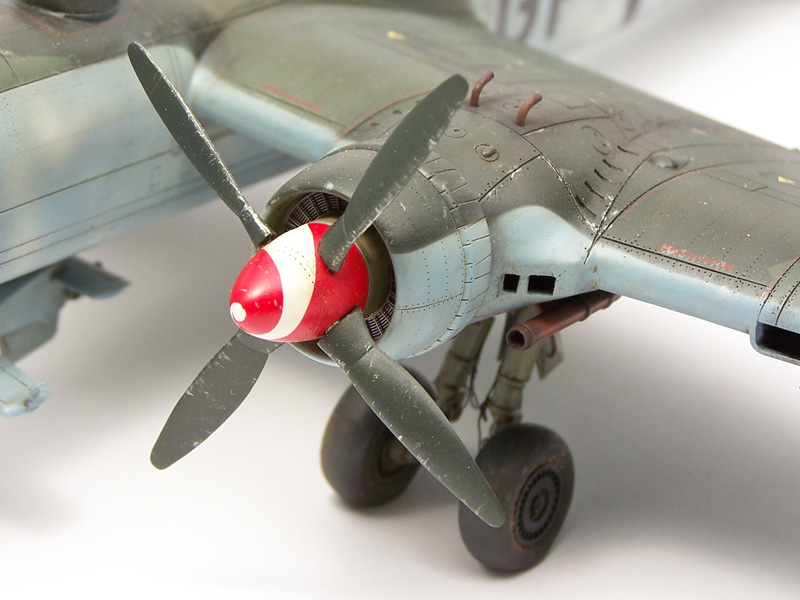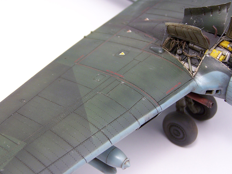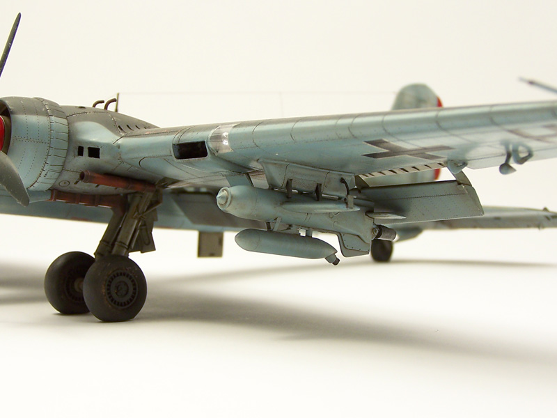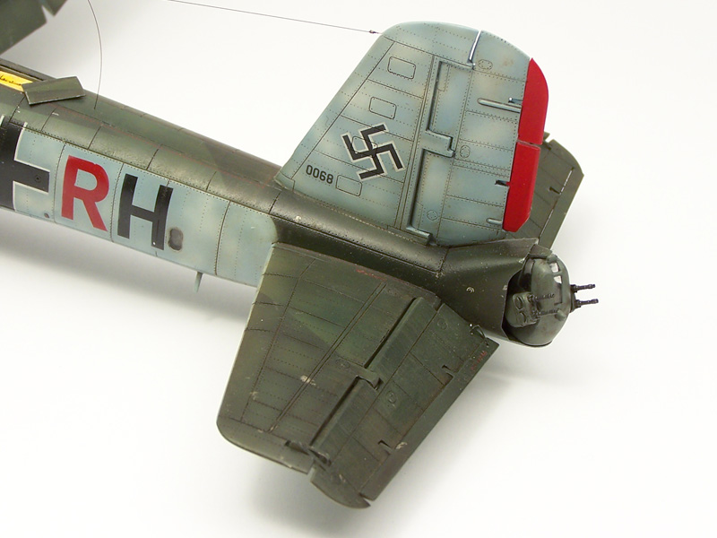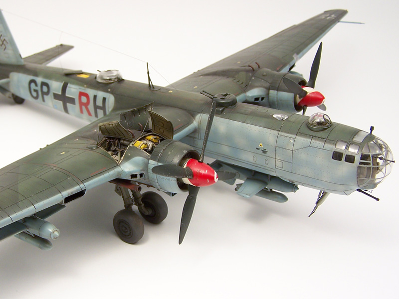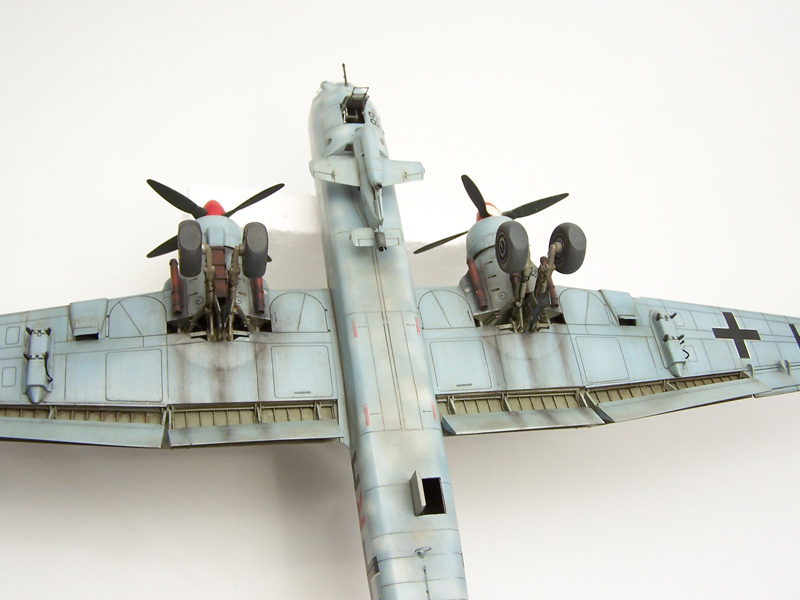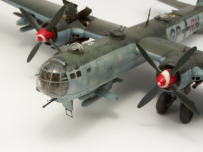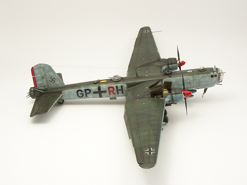 Velmi pěkná stavebnice firmy Revell, kterou jsem onýtoval a doplnil o leptané díly interiéru a exteriéru od firmy Eduard. Vysunuté klapky jsou z produkce CMK a detail motoru je novostavba ze dvou DB 601 stejné firmy, doplněné vlastnoručně vyrobenými díly. Jednalo se od A-5 odvozenou verzi, postavenou jen v malém množství cca 10 strojů. Provedení R1 bylo vyzbrojeno ocasní věží s dvěma kulomety MG 81 Z, mělo upravenou pumovnici. Přední a střední část obsahovala dva závěsy pro pumy do celkové hmotnosti 2000 kg, v zadní pumovnici mělo být neseno 500 kg pum. Vznikly čtyři, možná až šest strojů. A-6/R2 byl stroj se zesílenou výzbrojí a upravenou kabinou. Tato verze byla na přídi vybrojena kulometem MG 131, v hřbetní, dálkově ovládané věži, dva kanony MG 151/20, v přední části podtrupové vany a na hřbetě byl MG 131 a na konci trupu věž se čtyřmi kulomety MG 81 Z. Nosit měl pumy nebo řízené protilodní střely.